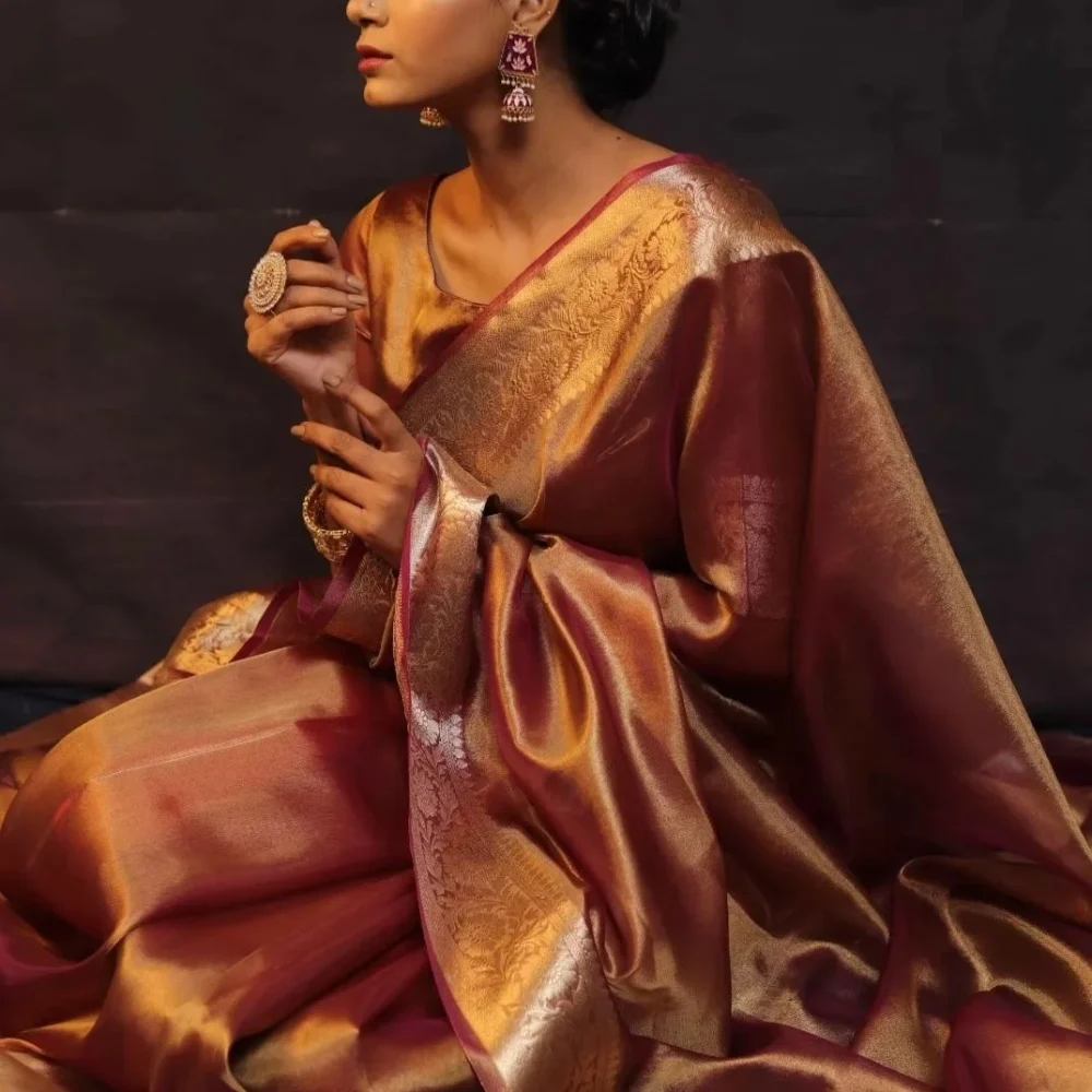 Discover the timeless elegance of our Banarasi Tissue Silk Saree Red Color with Zari Weaving Jacquard Border, a masterpiece of traditional craftsmanship and modern style. This exquisite saree, crafted from the finest dyeable tissue silk, offers a delicate sheen and a luxurious drape that will make you feel like royalty.